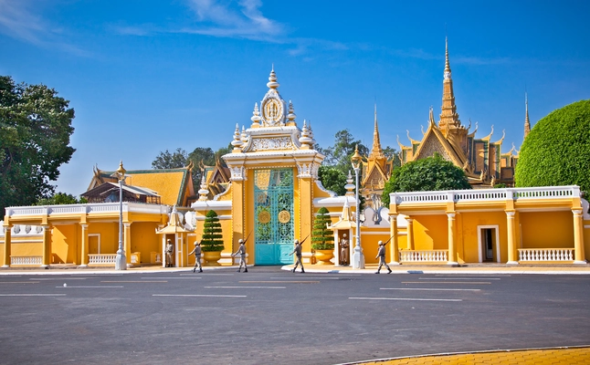 “With its classic Khmer roofs and ornate gilding, the Royal Palace dominates the diminutive skyline of Phnom Penh.”