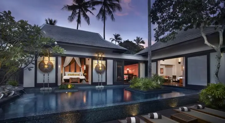 "Set amid stylishly landscaped grounds and lagoons, all the secluded villas here have their own plunge pool, outdoor bath and garden sala."