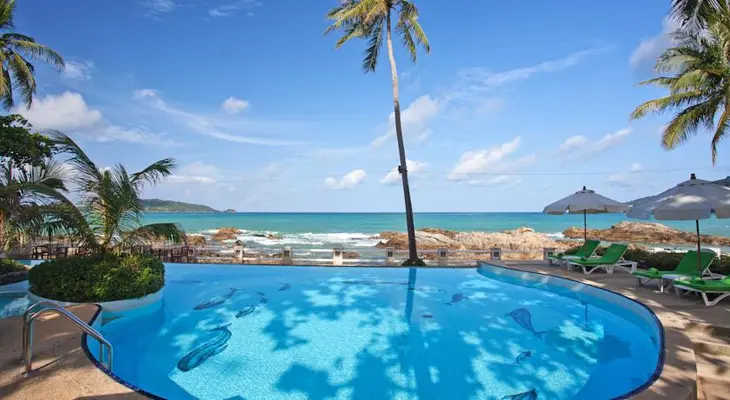 “The Diamond Cliff is a gleaming hilltop resort at the northern end of Patong Beach, with rooms commanding great ocean views.”