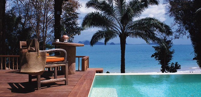 "On a secluded island reached by a 40-minute powerboat cruise past the limestone outcrops of Phang Nga Bay, these pool villas all have private butlers, and most have panoramic views of the sea."