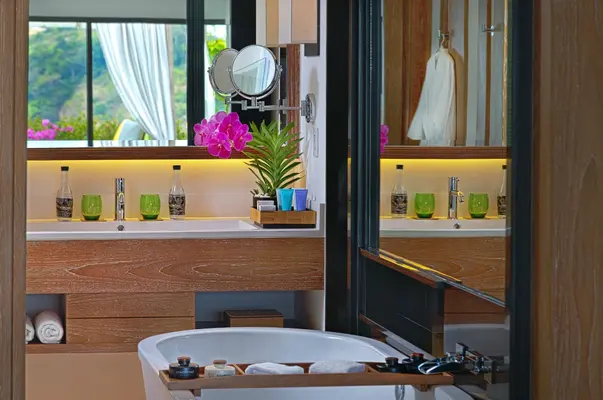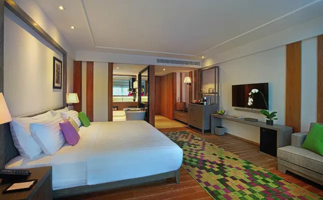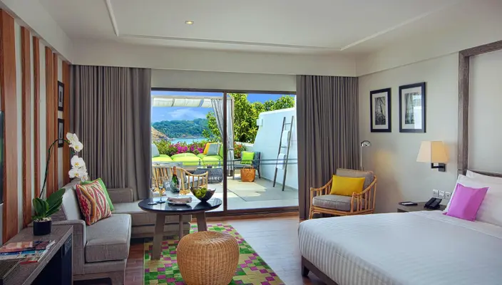 "The rooms at the Nai Harn are a blast of colour – lime greens rugs, deep purple threads and garlands of pink bougainvillea all pop against a background of blue-green sky and sea – but it’s the comet-like white of Nai Harn beach you’ll most fondly remember"