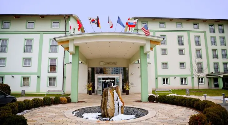 “A 10-minute tram ride from the center, this large hotel built in 2004 near the Borský Park is perfect for anyone passing through town with a car.”