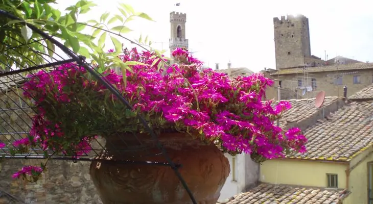 Many rooms and the terrace take in sweeping views of tile roofs and the valley below, and the stage-set streets and squares of the medieval town are just outside the door. — Fodor's