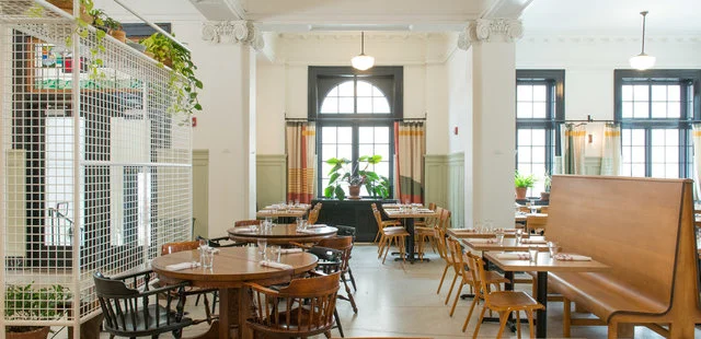 “New American in the Ace Hotel Pittsburgh spotlights sustainable, locally sourced meats – from steaks (porterhouse, tenderloin) and cheeseburgers to dishes like braised rabbit with semolina gnocchi.”