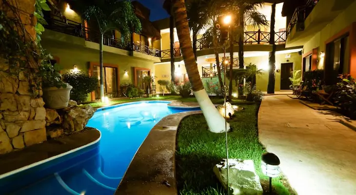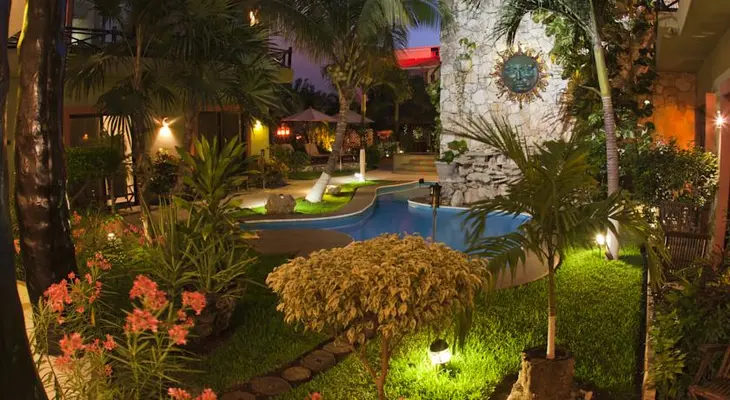 “This small inn three blocks from the beach is a work of art, with Mexican décor, batik wall hangings, and rustic wood-frame beds.”