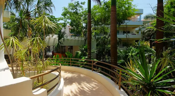 “Set back off the beach on Fifth Avenue (Quinta Avenida), in a modern white-washed compound abutting a lovely free-form pool and gardens, this is a condo-hotel with disparate but necessary parts.”