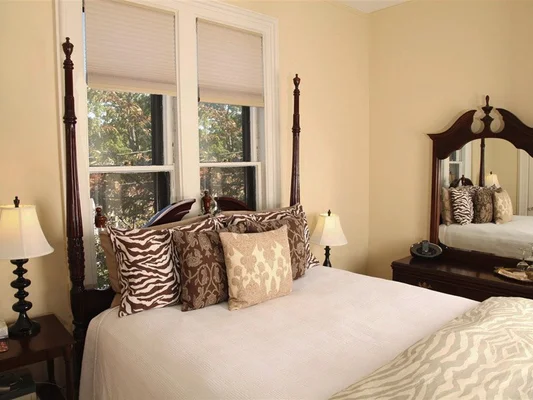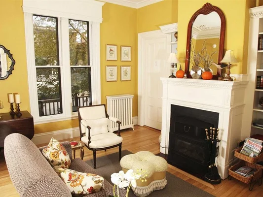 “Set among the glorious homes of the Western Promenade, this 1871 house displays much of the era's Victorian grandeur... Spacious rooms are either brightly painted or papered with... Waverly prints.”