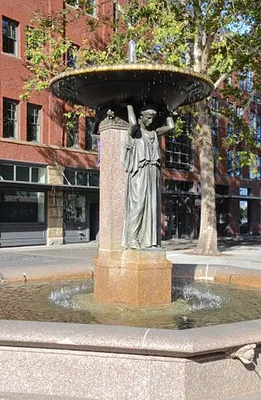 In many ways the living room, public heart, and commercial soul of downtown, Pioneer Square is not entirely square, rather an amphitheater-like brick piazza. — Fodor's