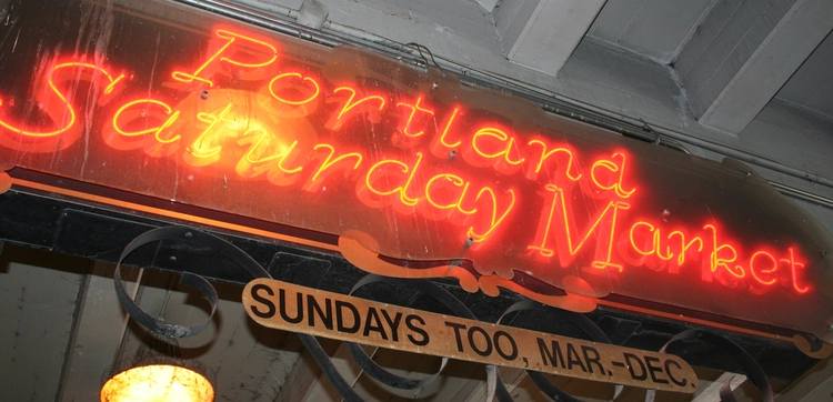 On weekends from March to Christmas, the west side of the Burnside Bridge and the Skidmore Fountain area has North America's largest open-air handicraft market. — Fodor's