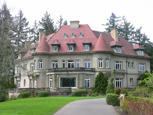 "The largest and most opulent home in Portland is perched on a 1,000-foot-high crest adjoining Forest Park, looking east over the city, the river, and the major peaks of the Cascade Mountains" Full review