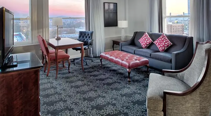 "In the former Multnomah Hotel, built in 1912, the grand lobby of this hotel offers an extravagant welcome to the spacious two-room suite accommodations." Full review