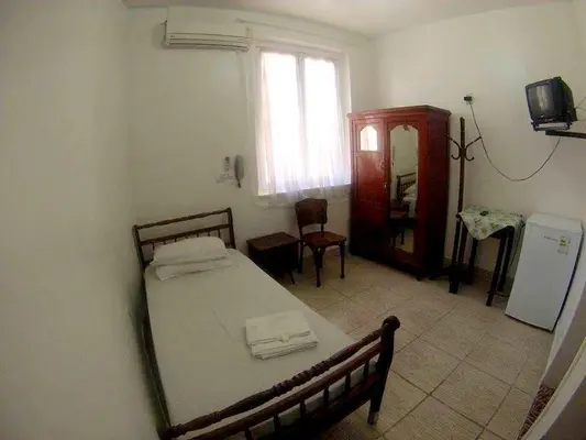 “The spacious rooms in institutional green feel like dorms. Fortunately the rooms are clean and well lit, making this a decent budget choice.”