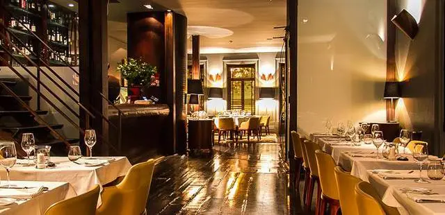"The unique azulejo covered façade leads to two elegantly contemporary dining rooms, one in the style of a library. Good menu of traditional Portuguese and international cuisine." Full review