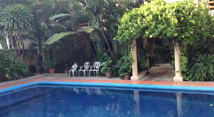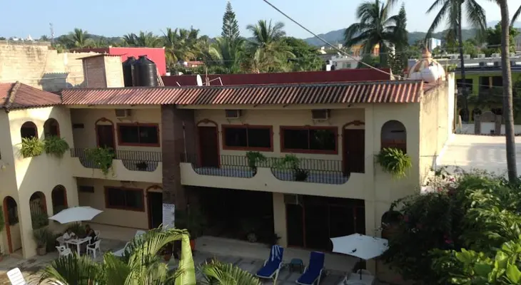 “A block from the beach, in an area with lots of good restaurants, "The Palms" has two floors of rooms surrounding a large, clean, rectangular pool.”
