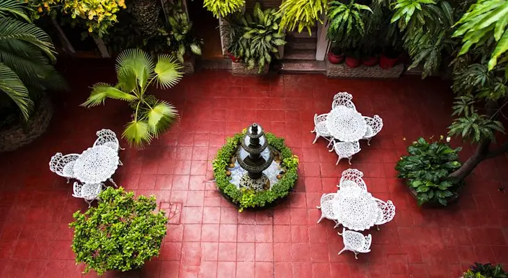 “Some of the sombre rooms here have seen better days, but they all have a/c, cable TV, safe and fan, and overlook a spacious, shady courtyard where excellent breakfasts are served.”