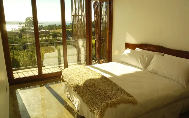 “At this sophisticated base for exploring Chile’s rustic south, the 22 rooms all have views to the west; arrebol means “the color of the clouds at sunset.””