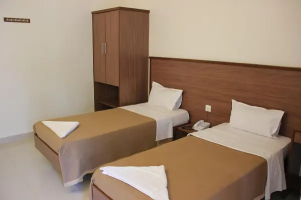 “Sizeable if somewhat spartan rooms (with fans or a/c) spread over four floors in a suburban block close to Osho.”