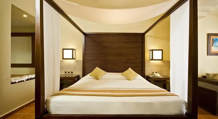 "This all-inclusive family resort boasts sandy beaches, lush landscaping, lakes, and tropical gardens"