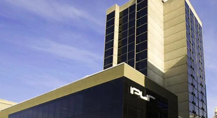 The Hilton Quebec is a high-rise building that is connected to the convention center by an indoor walkway. — Oyster