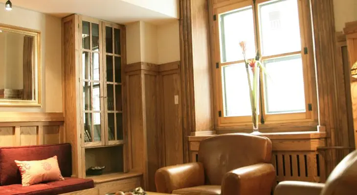 “Decorated in a modern rustic style that combines neutral tones and rich woodwork, the Saint-Pierre is a classic inn that offers an intimate and calm atmosphere.”