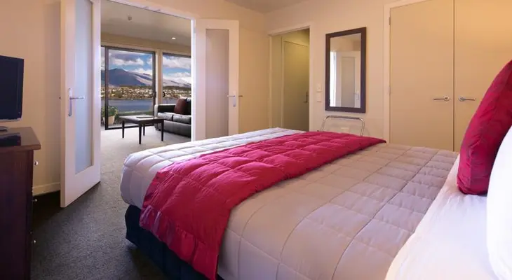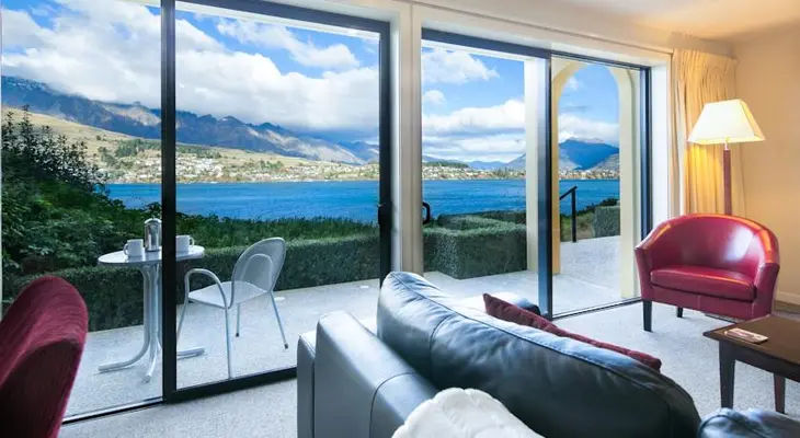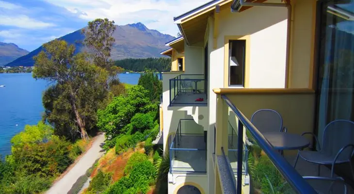 “There are 16 suites and apartments at this upper-middle-range property on the shore of Lake Wakatipu.”