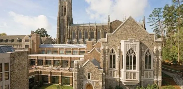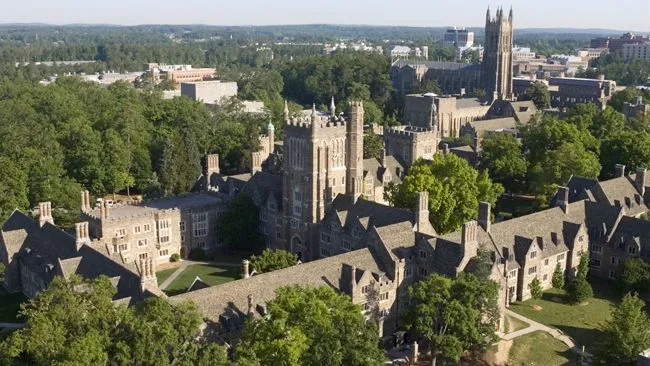 “Endowed by the Duke family's cigarette fortune, the university has a Georgian-style East Campus and a neo-Gothic West Campus notable for its towering 1930s chapel.”