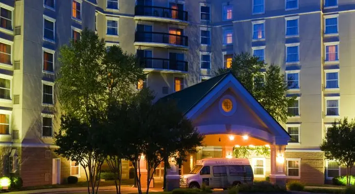“Offering courtesy shuttle service to and from the airport, this all suites member of the Hilton chain makes for a convenient stay for layover travelers.”