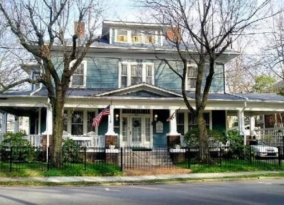 “This is the first bed and breakfast to open in the city. The early 1900s Colonial Revival-style home is surrounded by an iron fence in a residential area.”