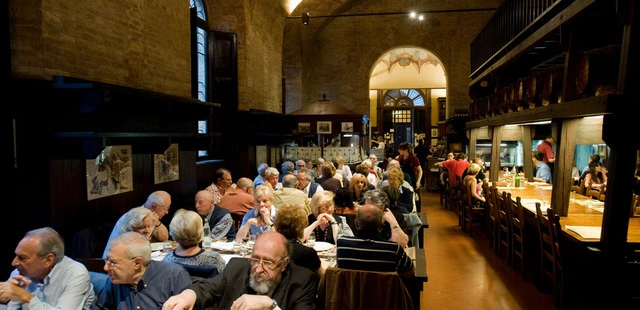 Yes, it’s touristy, but the atmosphere’s wonderful at this cavernous enoteca -cum-restaurant in a 15th-century palazzo with frescoed domes, vaulted brick ceilings and chequerboard marble floors. — Lonely Planet