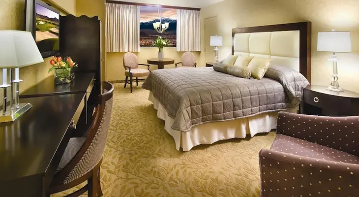 “Regardless of your room location, the Nugget's trump card is the sprawling atrium pool. A lush wet wonderland with dynamite mountain views.”
