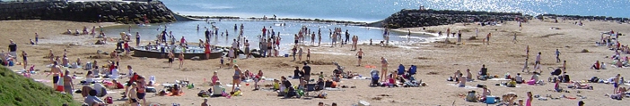 "The sea water is geothermally heated with temperatures reaching 15-19C in summer. People swim in the human-made lagoon then enjoy the hot tubs and sand and steam-baths."