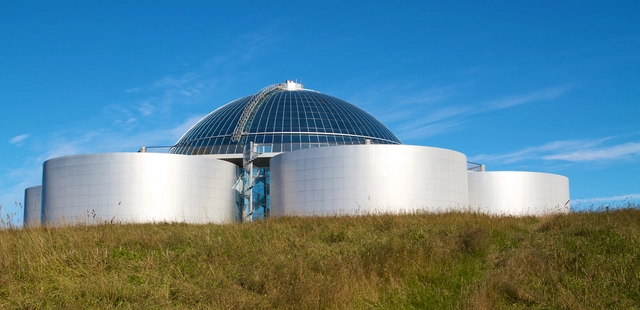 “This futuristic glass dome, built in 1991, sits atop five enormous cylindrical tanks storing 24,000 tons of the city's geothermally heated water.”
