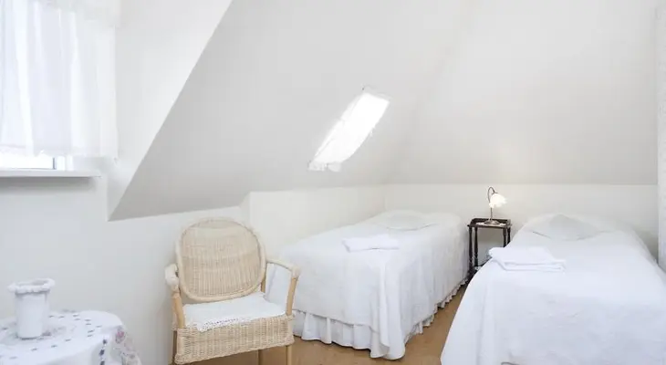 “Close to a small lake a 10-minute walk out of town, Helguhús is a well-turned-out town house with cosy, cream-coloured rooms (all with shared bathrooms).”