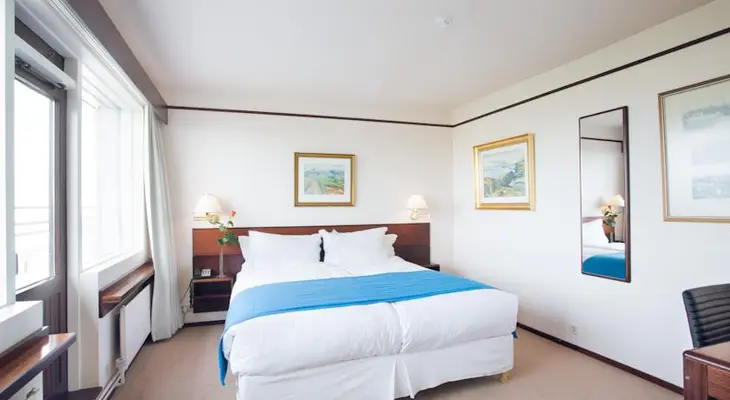 "The work of some of the country’s best-known artists, including Jóhannes S. Kjarval, adorn the rooms, lounges, library...rooms are rather classic, with leather chairs and dark wood furnishings." Full review