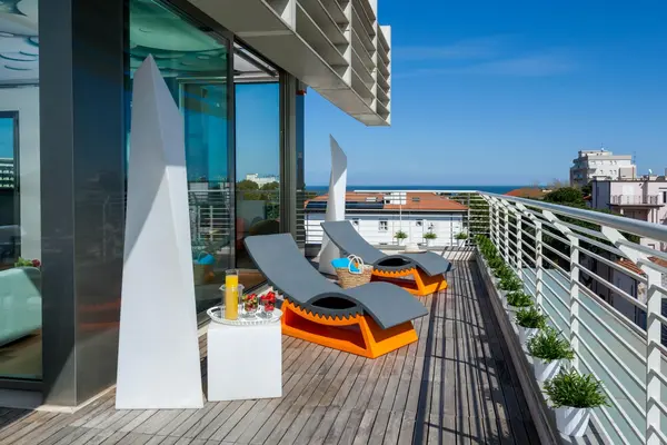 This modern, mid-range hotel is on the Riccione waterfront in Rimini, a resort area and historic city on the northeast coast of Italy. — Oyster