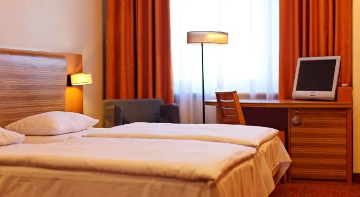 "Modern ten-storey slab popular with tourist groups and conferences, and close to the Art Nouveau buildings of Alberta iela."