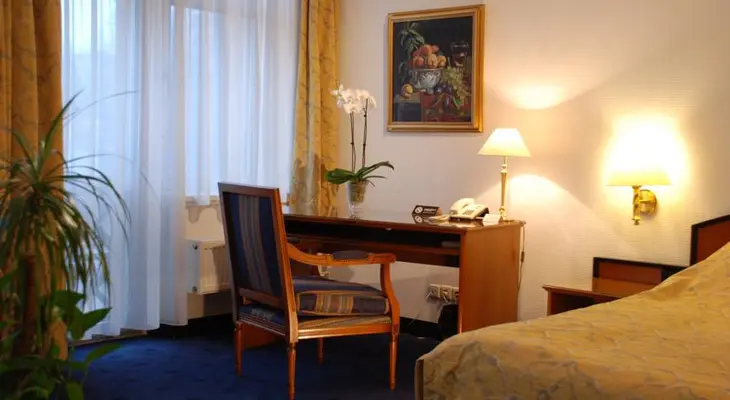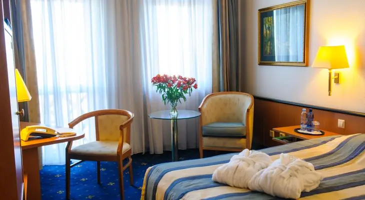 “This landmark building on a major thoroughfare close to the Freedom Monument boasts a spacious lobby and the highly regarded Otto Schwartz restaurant on the top floor.”