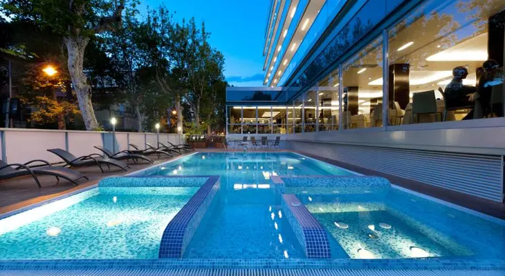 “This medium-size, upscale hotel is just a five-minute walk from the Adriatic Sea in fun-loving Rimini, a popular resort area full of vacationers and business travelers.”