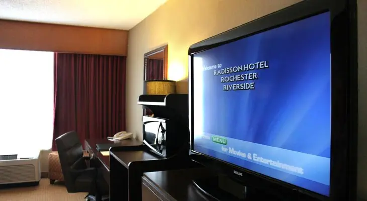 “Targeting business travelers, this hotel is within close proximity to the Rochester airport and connected to the Riverside Convention Center. Boasting views of the city and the Genesee...”