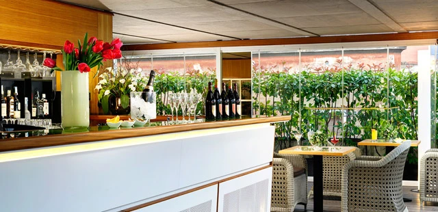 "Sepia-toned photographic murals of iconic Roman monuments set the tone." Full review