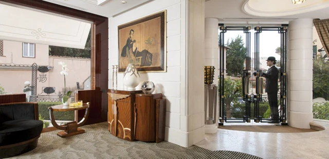 "Situated just a few metres from the greenery of the Villa Borghese gardens, this elegant aristocratic hotel is adorned with Art Deco features."