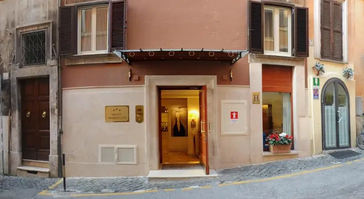 "A young artist couple run this tastefully modern hotel with a small garden courtyard on a quiet street just off Piazza Barberini."