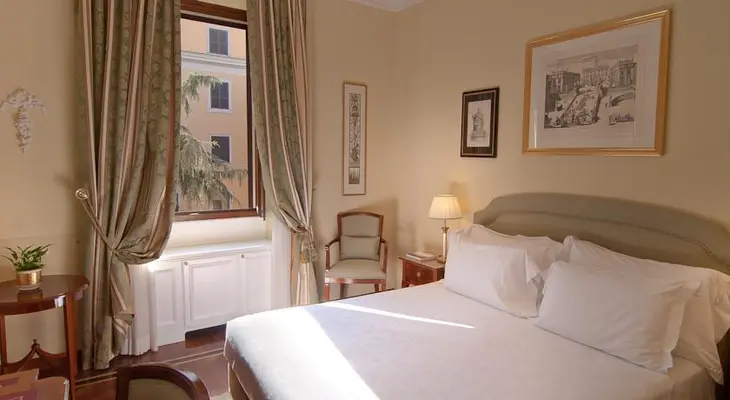"Literally across the street from Vatican City limits...old-worldy rooms feature tile or hardwood floors, heavy drapes, Oriental rugs, and quality beds, though standard guest rooms can be a bit “cozy.”" Full review