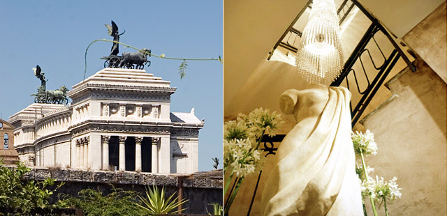 "The Inn at the Roman Forum shows off a striking decor of walls covered in silk moiré, heavy bronze drapes, parquet floors, and sculptures and paintings of ancient aristocrats." Full review