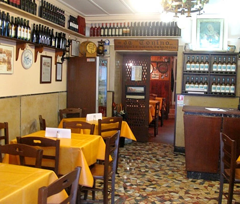 "Small trattoria tucked in the quiet Monti neighborhood in the shadow of the Colosseum; walls lined with cork...the stellar food is worth the trek. " Full review