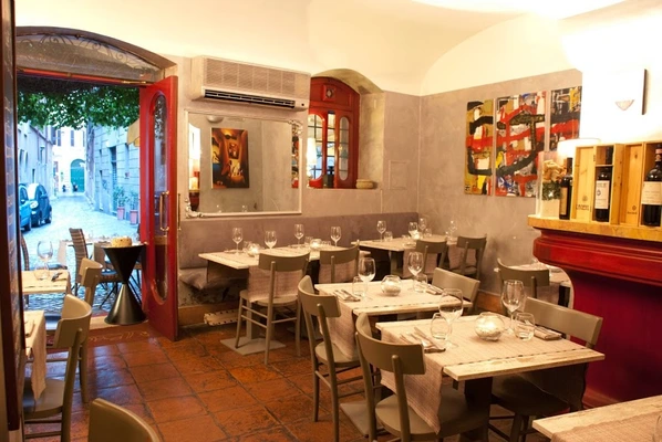 "Tapestries and vaulted interiors create an enchanting, yet informal atmosphere. Take your time with a bottle of wine and some antipasti outside in the piazzetta."
