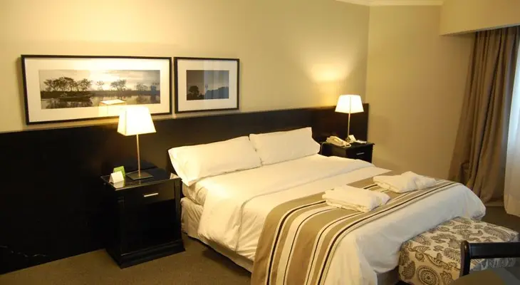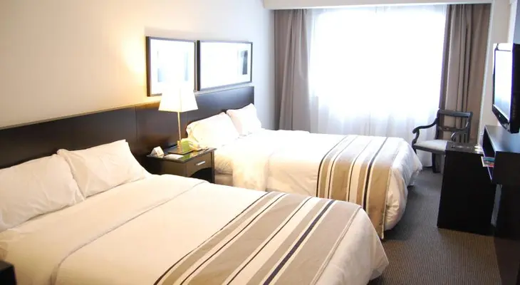 “Luxurious rooms, apartments and suites are to be had in this business hotel with rooftop pool.”