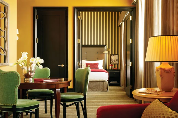 "Bedrooms are not quite haute luxury, but more than comfortable enough, with all the necessities: fine Italian linens, efficient work spaces, and Mac Minis in all the rooms