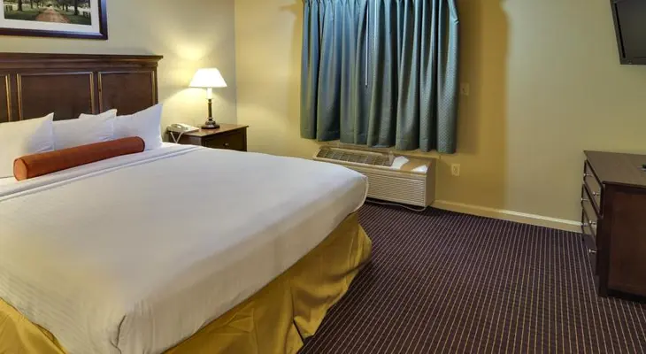 “Right off the highway and a short walk from campus and downtown, this independently operated hotel is not the Ritz but is clean, has spacious suites, and serves waffles for breakfast.”