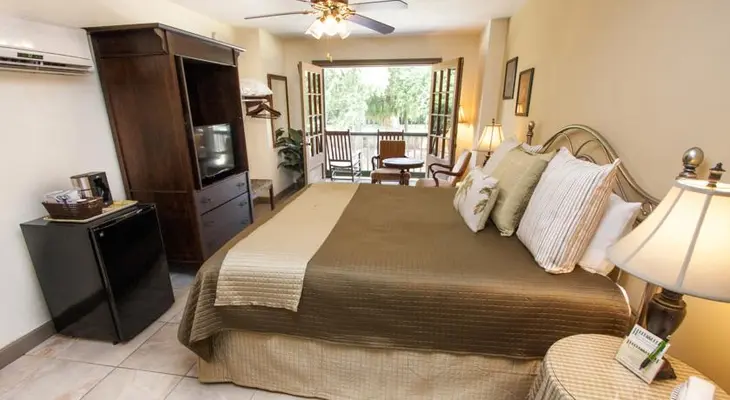 All rooms include in-room climate control, on-request ironing equipment, coffeemakers with Starbuck supplies, mini-fridges, 32- to 40-inch flat-screen TVs, free Wi-Fi, and shared porches or balconies outfitted with old-school rocking chairs.